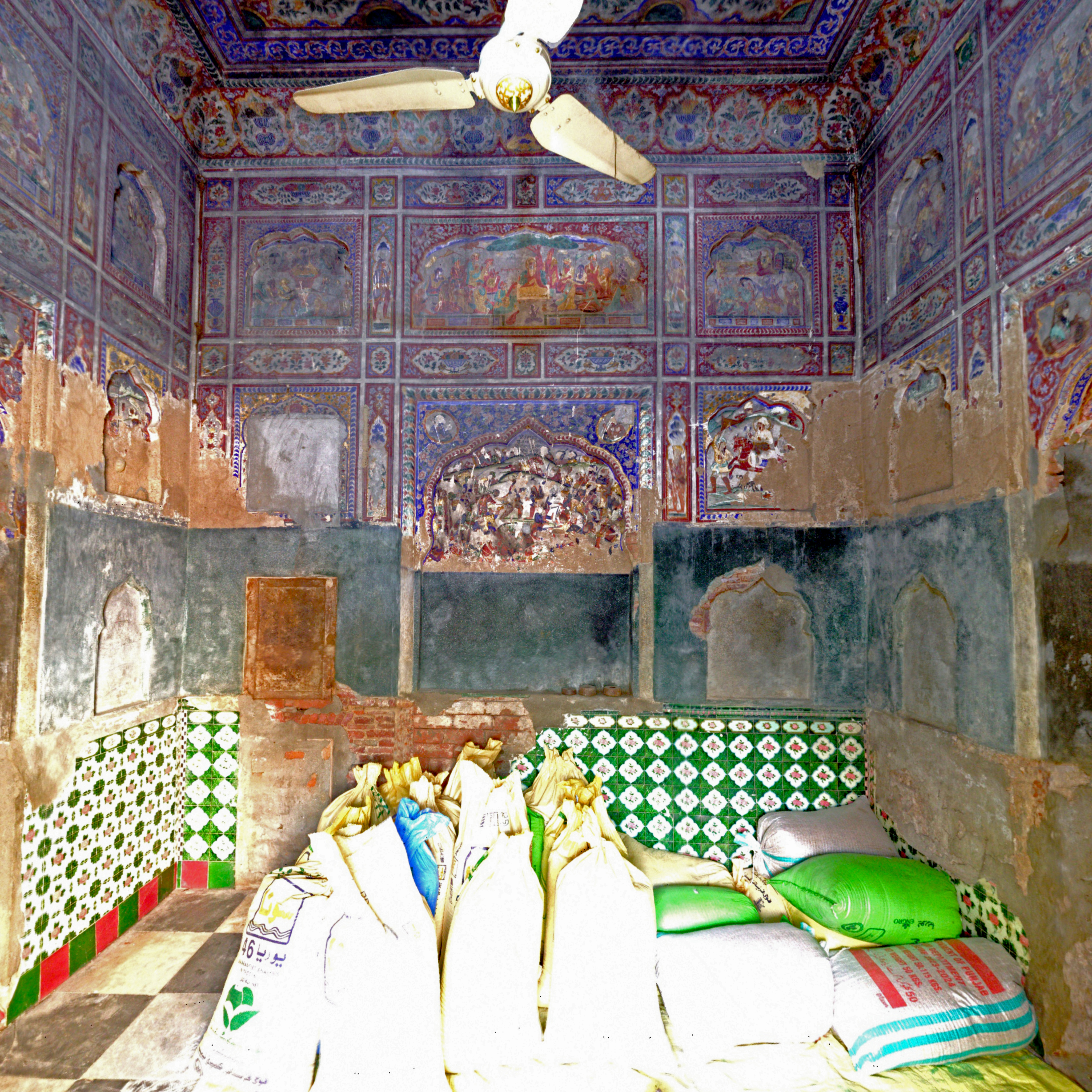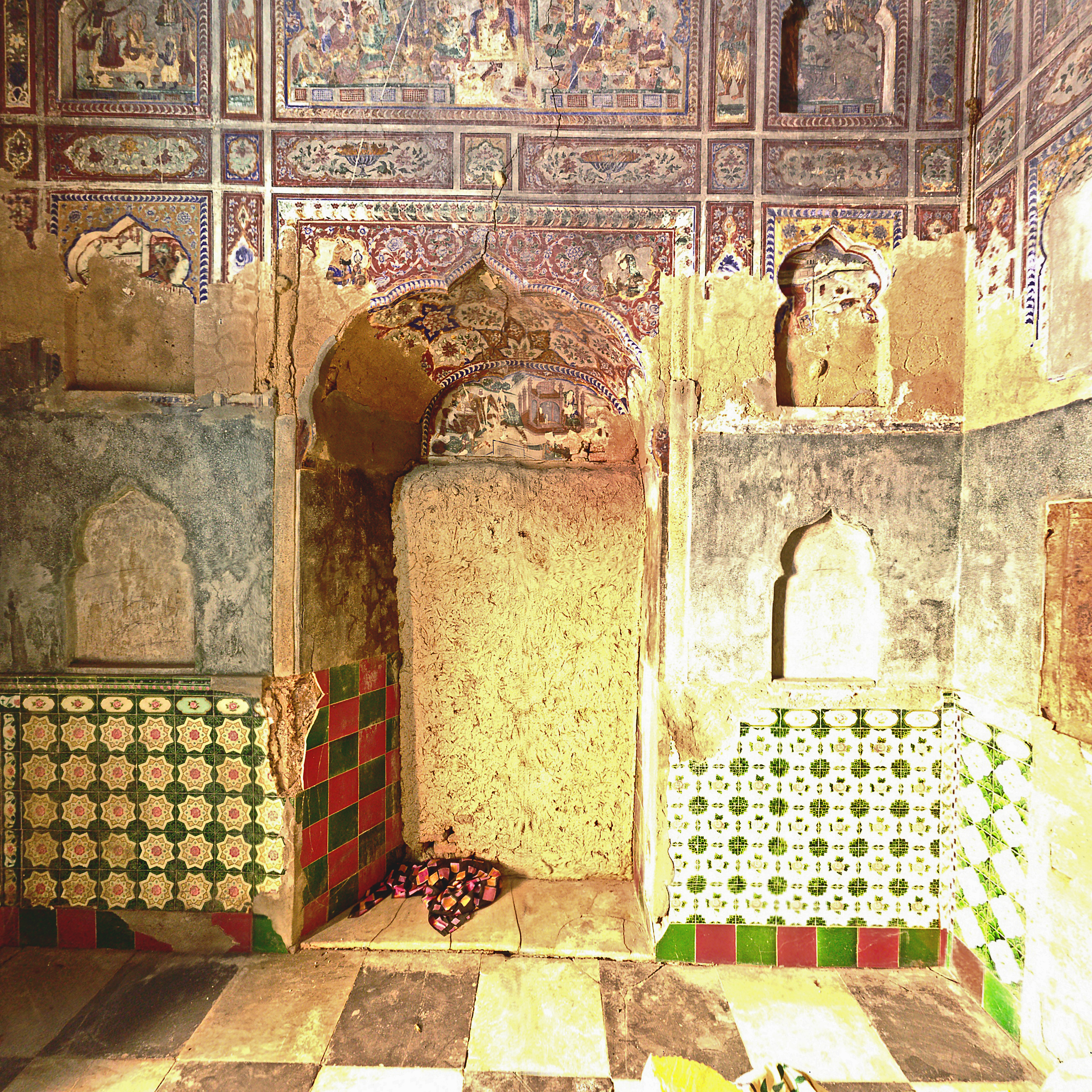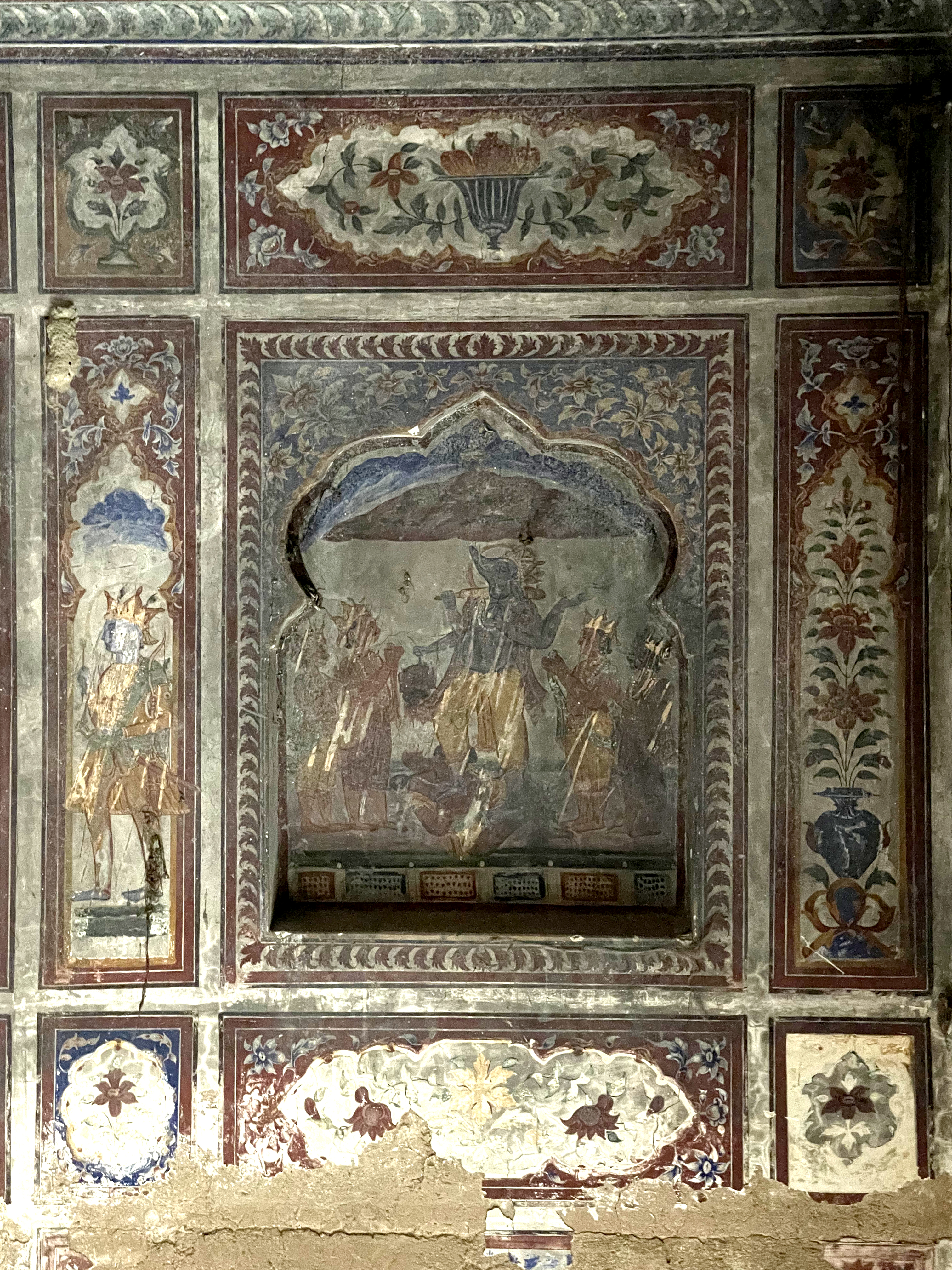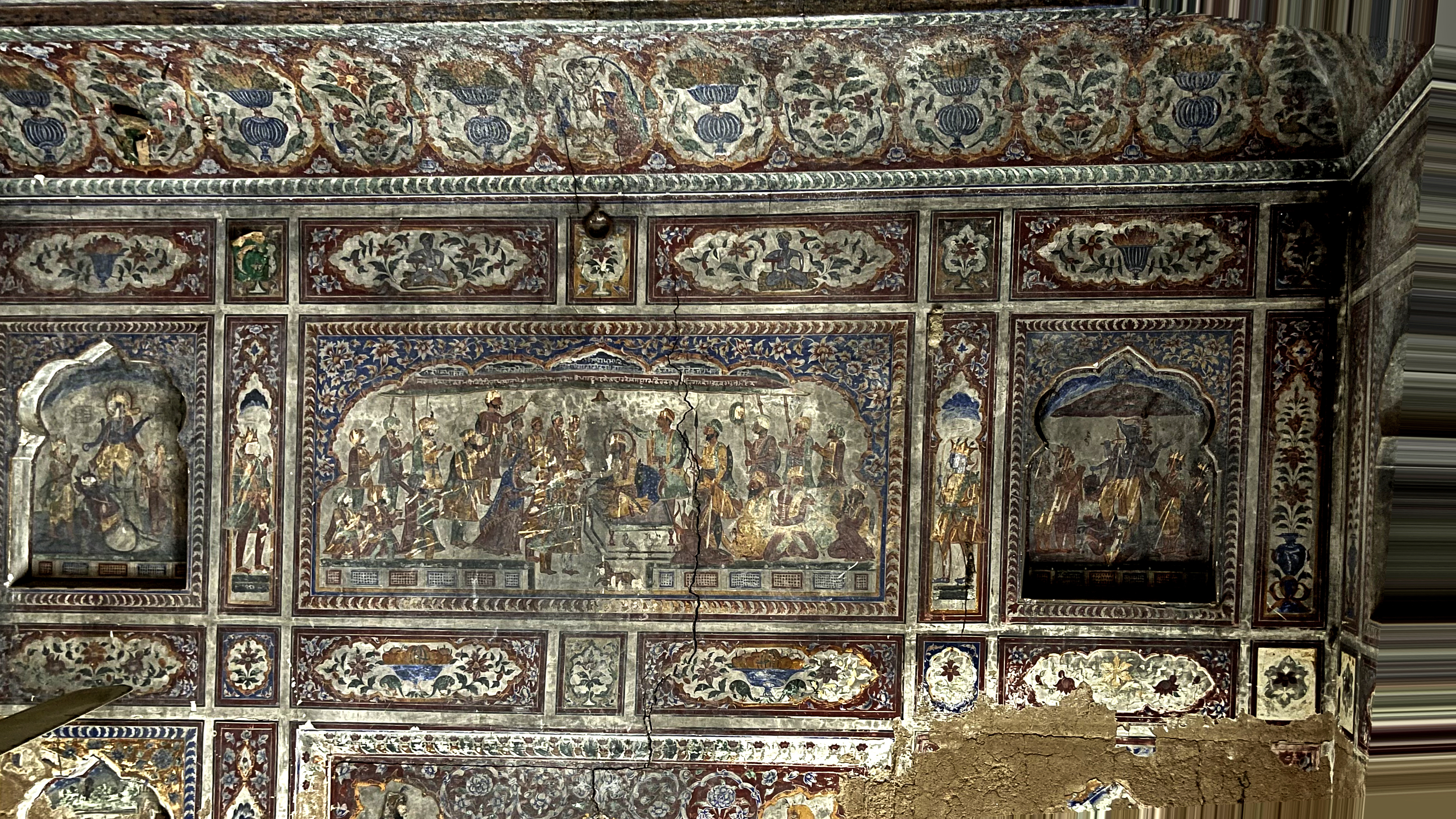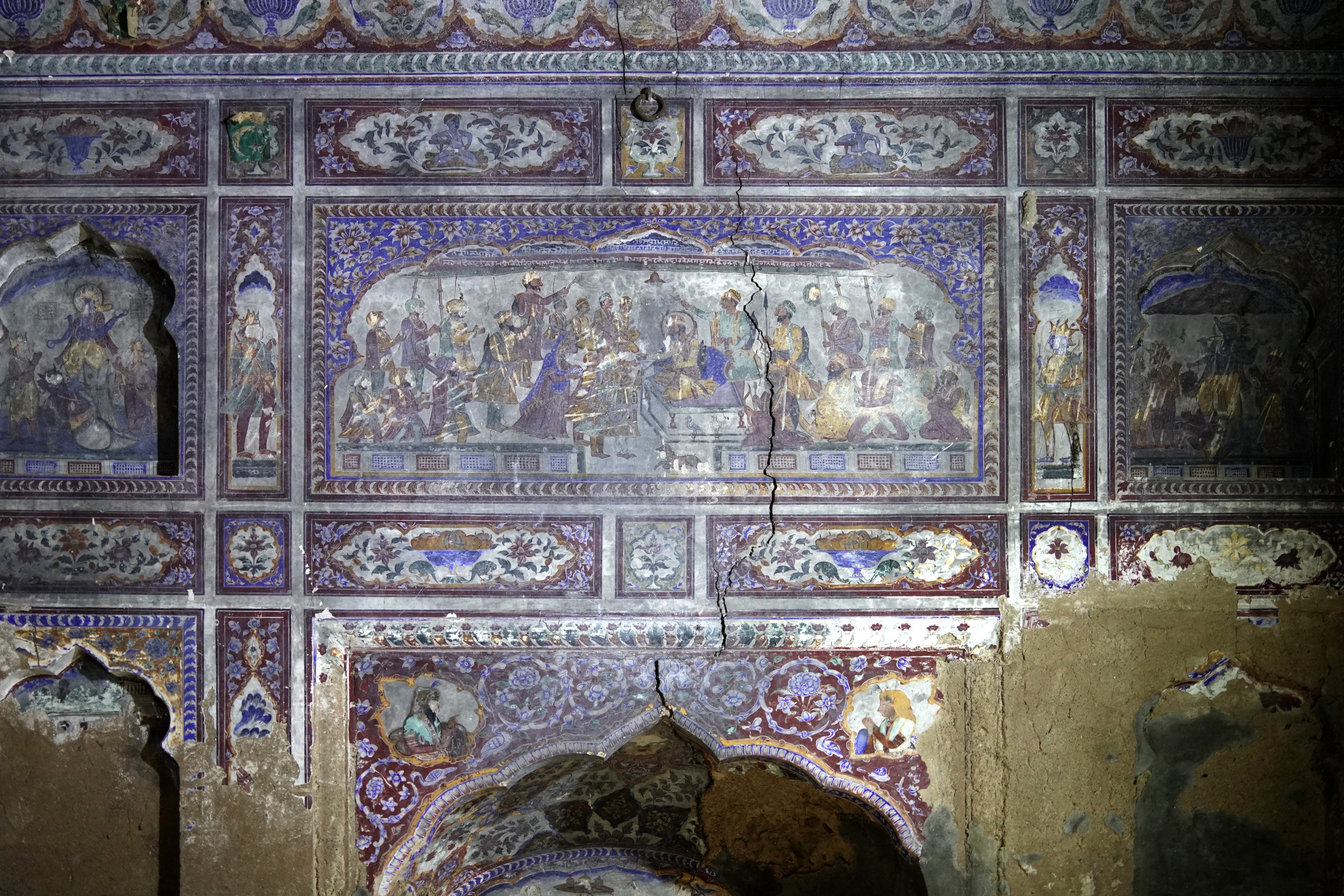 Even to date, the interior walls still display alluring frescoes, including those of various Sikh Gurus, along with a rare painting depicting the encounter of Guru Hargobind against Painde Khan at Kartarpur. The records of Bhatt Vahi Multani Sindhi, Banjharut Jalauton describe the battle scene: