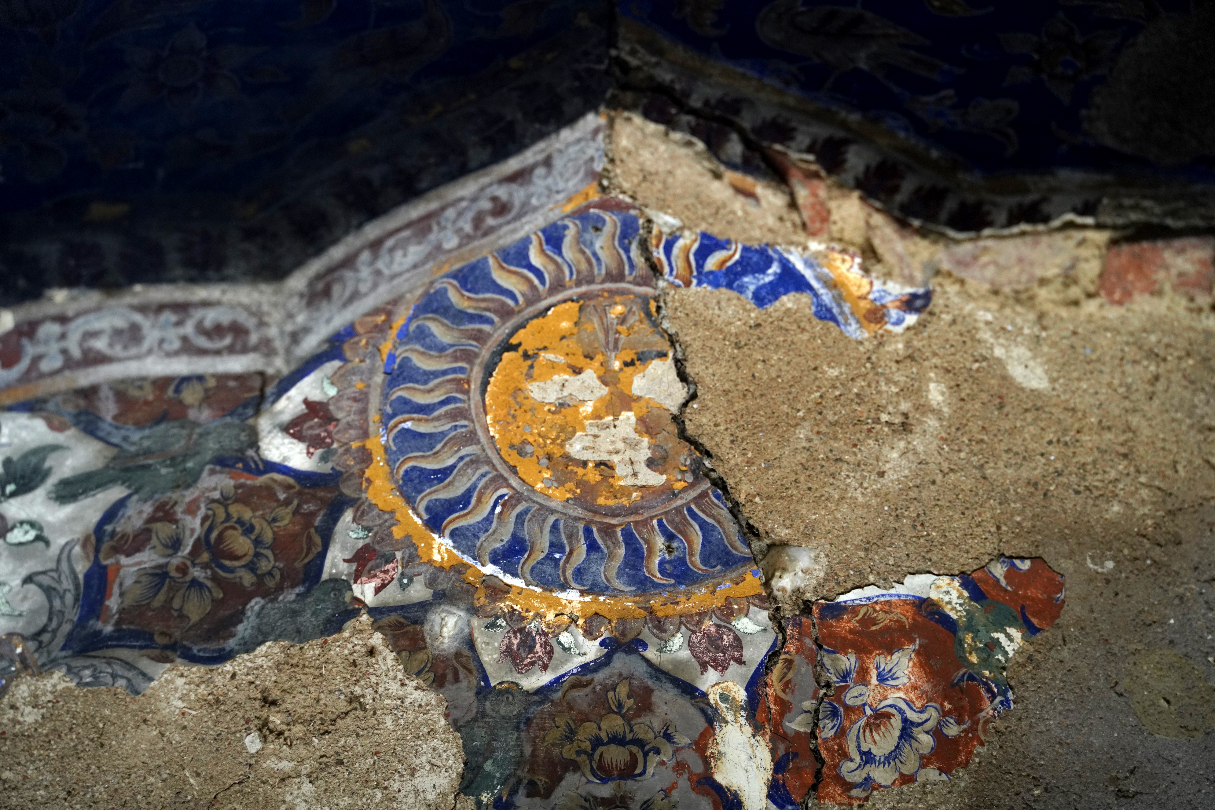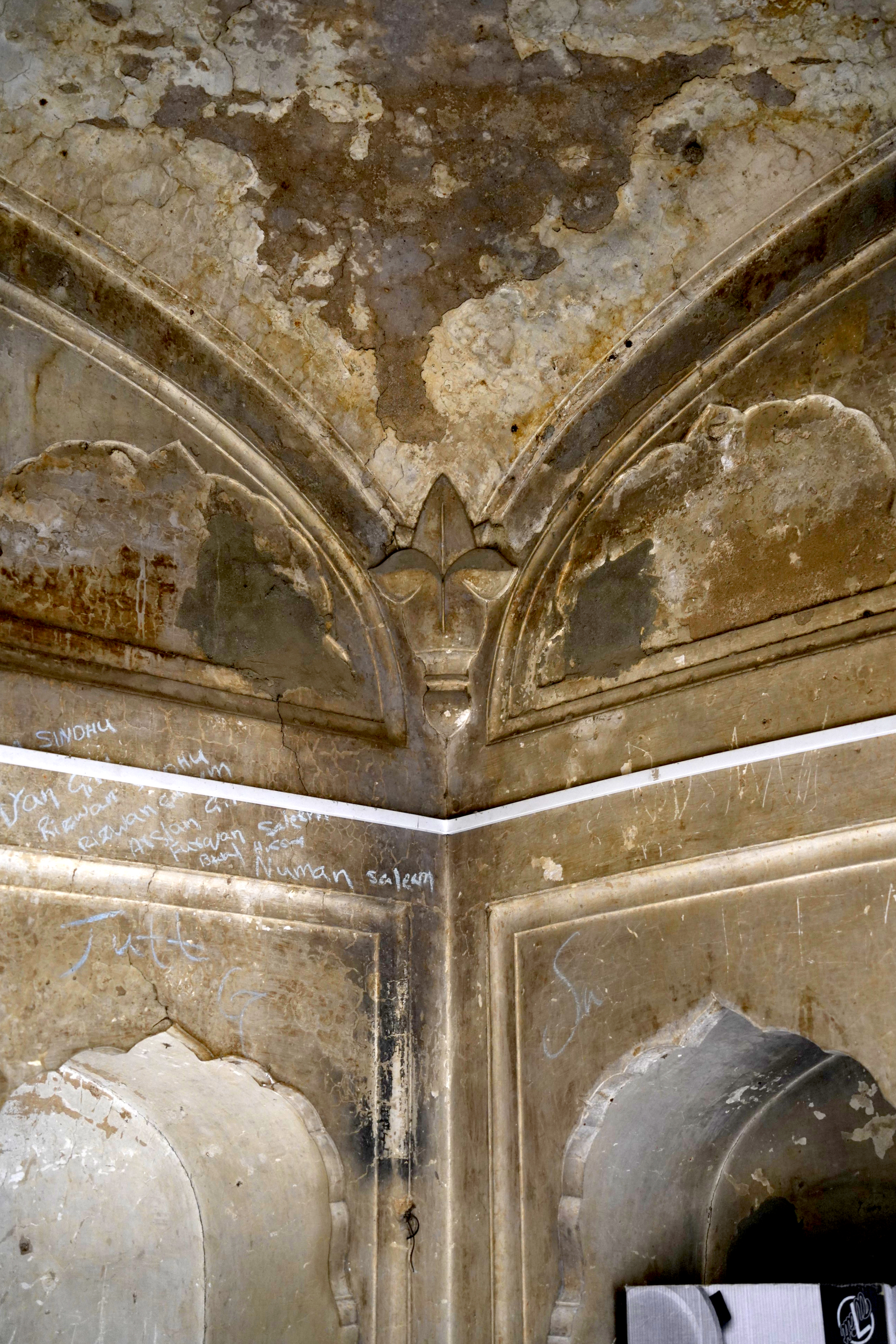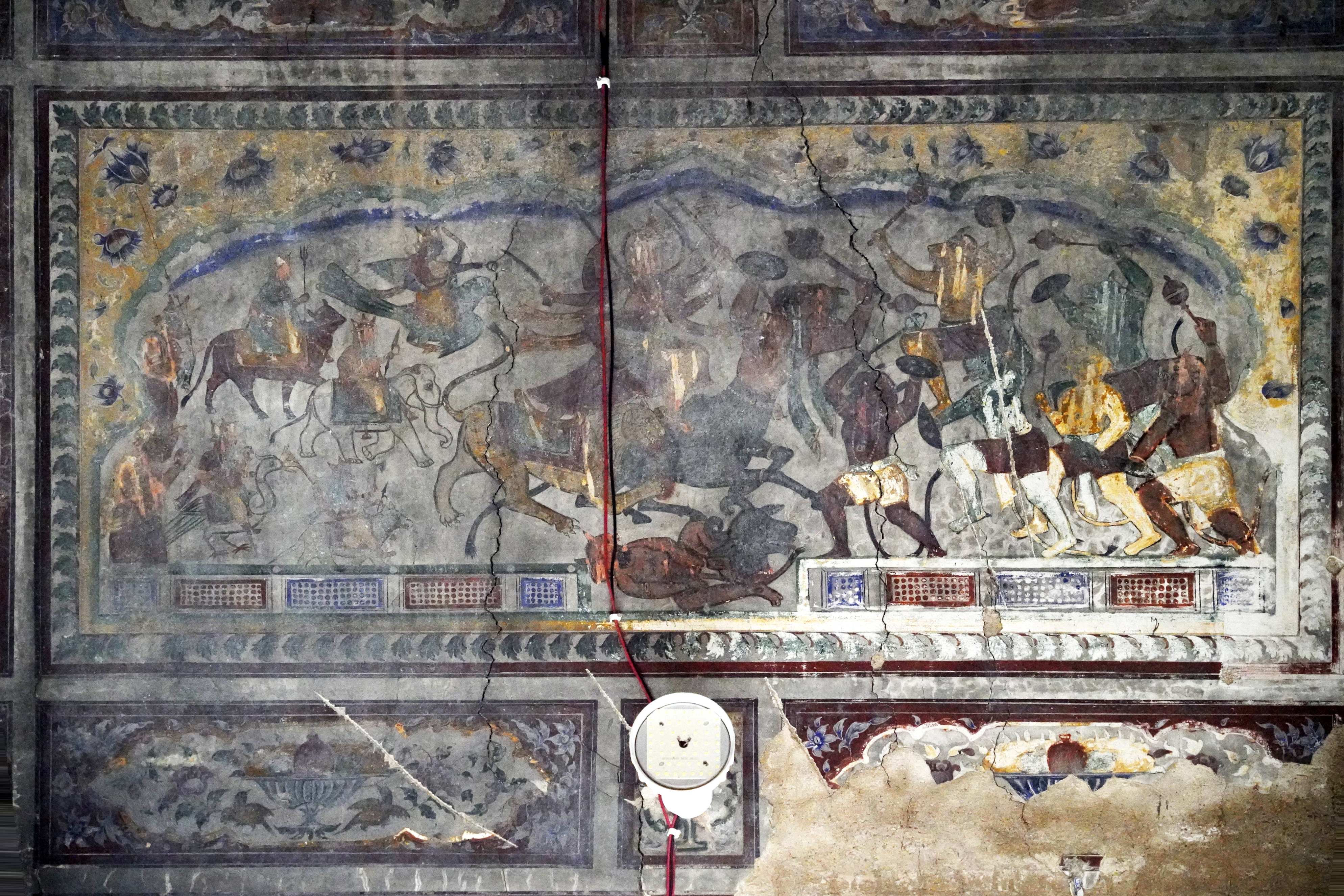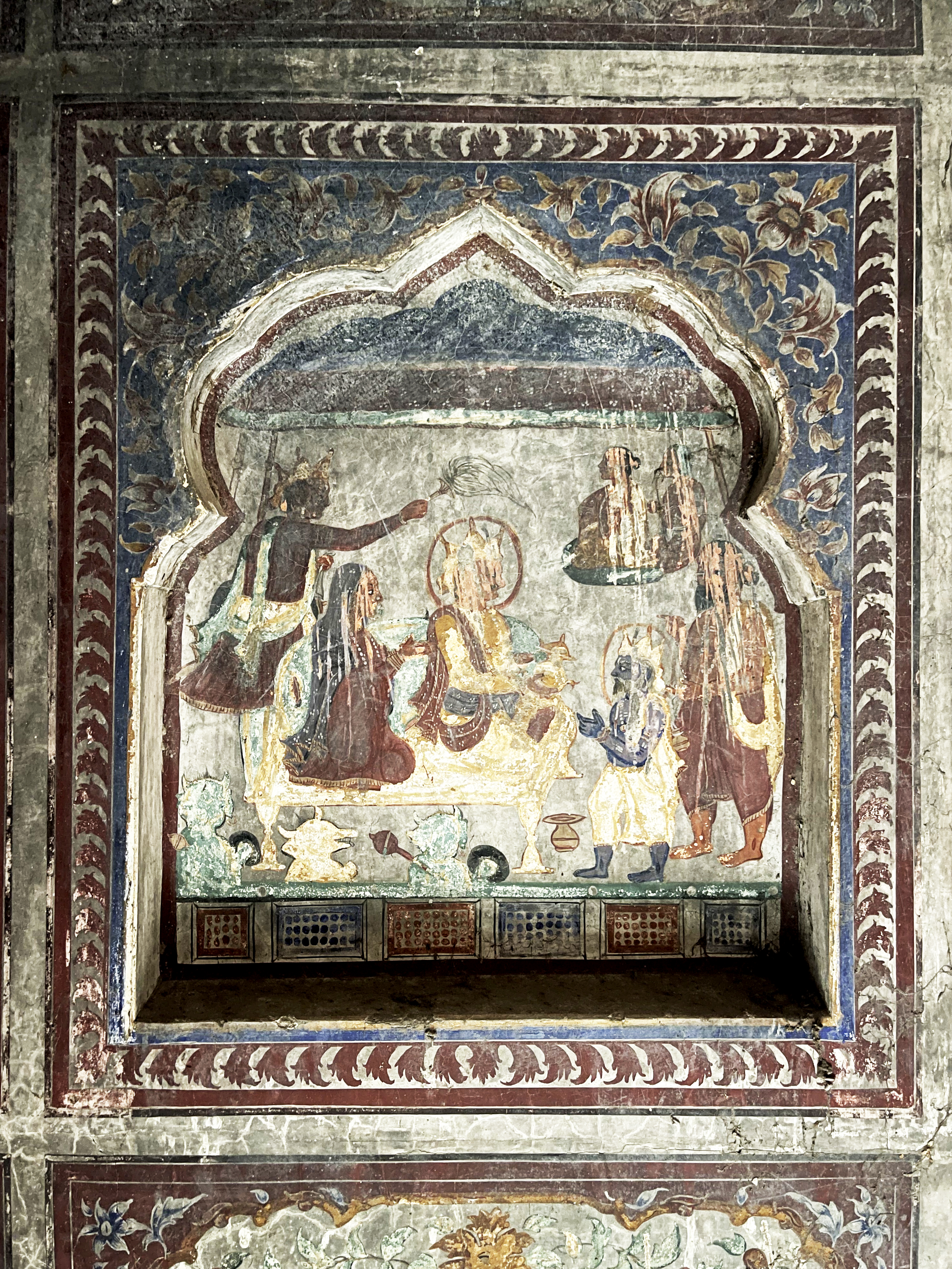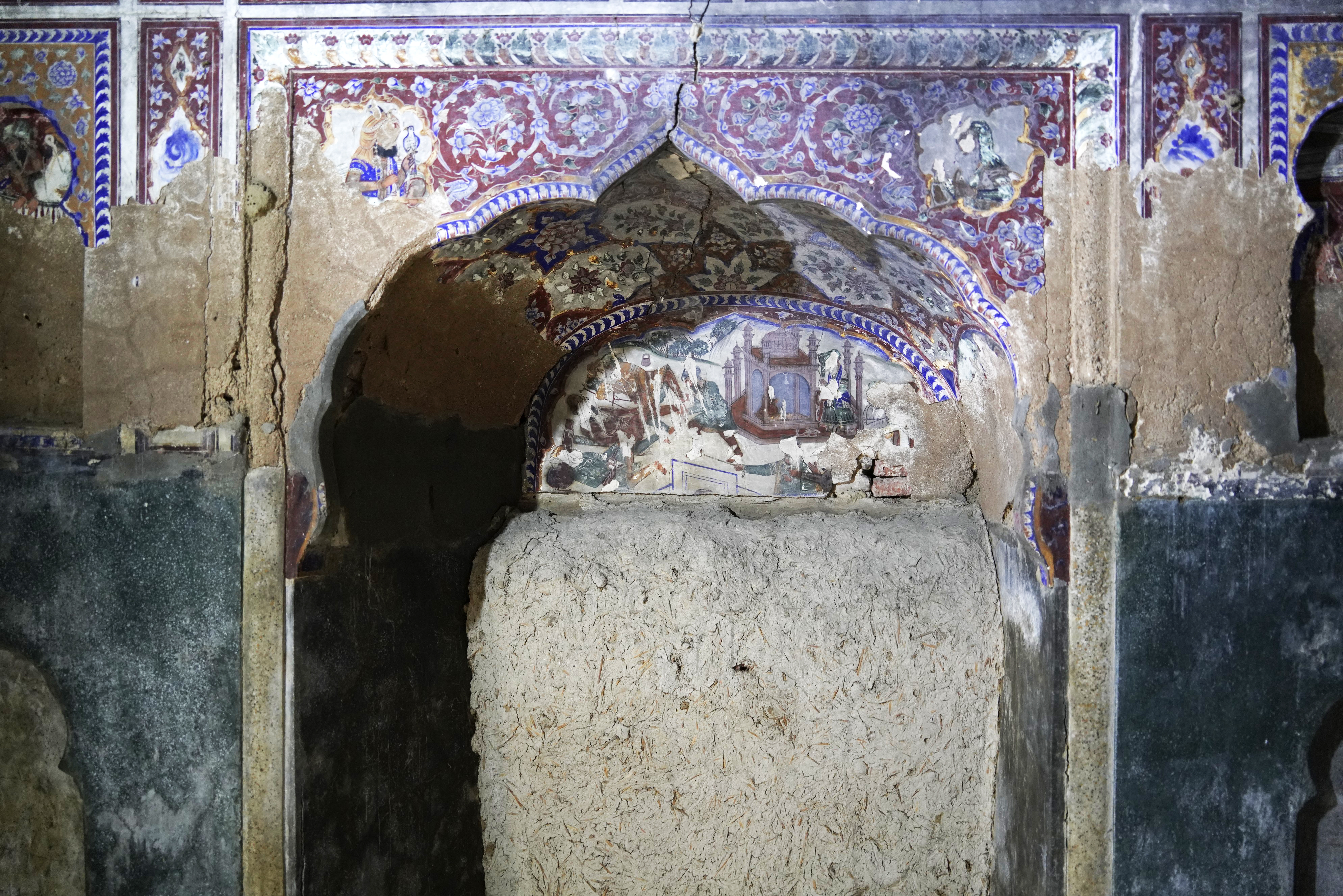 Even to date, the interior walls still display alluring frescoes, including those of various Sikh Gurus, along with a rare painting depicting the encounter of Guru Hargobind against Painde Khan at Kartarpur. The records of Bhatt Vahi Multani Sindhi, Banjharut Jalauton describe the battle scene: