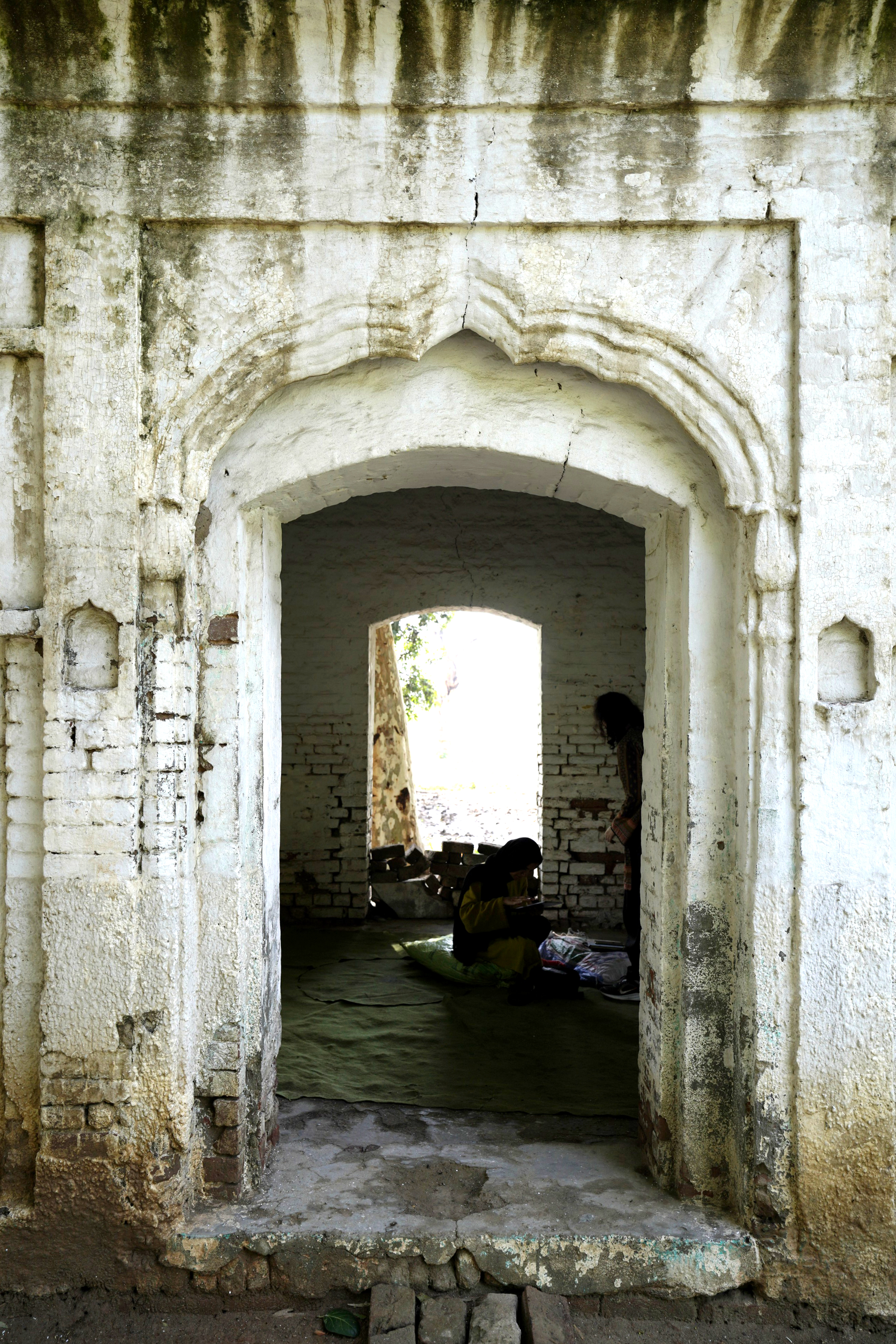 Unlike the elaborately finished and highly ornamental facades typical of other major gurdwaras, Gurdwara Sach Khand appears incomplete, which lends a distinct narrative to its architectural expression. The use of standard-sized bricks (9 x 4.5 x 3 inches) is evident throughout the structure, a detail that aligns with construction practices of the late colonial period. Furthermore, many grooves and shoulders of the arches indicate that the plasterwork, which would have added a layer of refinement and decoration, was never applied. These unfinished elements strongly suggest that the gurdwara was abandoned mid-construction, likely due to the Partition of India in 1947. It is possible that the gurdwara was intended to commemorate a story or event associated with Guru Nanak, but external circumstances halted its completion.